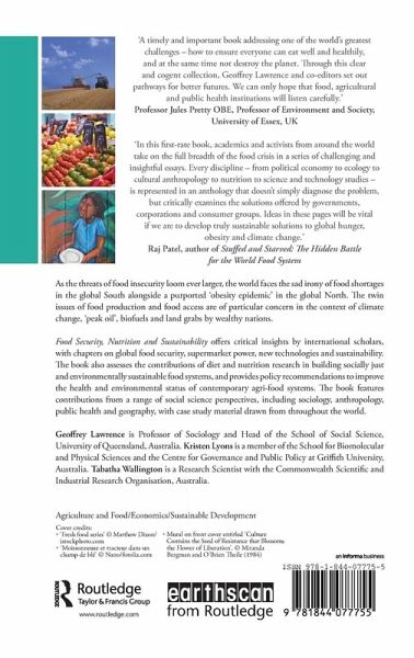1. Introduction: Food Security, Nutrition and Sustainability in a Globalized World Part 1: Global Food Security 2. Breadbasket Contradictions: The Unstable Bounty of Industrial Agriculture in the United States and Canada 3. Security for Whom? Changing Discourses on Food in Europe in Times of a Global Food Crisis 4. The Re-emergence of National Food Security on the United Kingdom's Strategic Policy Agenda: Sustainability Challenges and the Politics of Food Supply 5. Neoliberalism and Food Vulnerability: The Stakes for the South 6. Energy Security, Agriculture and Food Part 2: Food Systems, Diet and Nutrition 7. Unequal Food Systems, Unhealthy Diets 8. Explaining Patterns of Convenience Food Consumption 9. Public Health and Moral Panic: Sociological Perspectives on the 'Epidemic of Obesity' 10. The Food Regulatory System - Is it Protecting Public Health and Safety? 11. The 'Wellness' Phenomenon: Implications for Global Agri-food Systems 12. Supermarkets, Food Systems and Public Health: Facing the Challenges Part 3: Towards a Sustainable Agri-food Future 13. Bodies, Bugs and Dirt: Sustainability Re-imagined in Community Gardens 14. Biofuels: Finding a Sustainable Balance for Food and Energy 15. Examining the Mythologies of Organics: Moving Beyond the Organic/Conventional Binary? 16. Nanotechnology and the Techno-corporate Agri-food Paradigm 17. Conclusion: Drawing Evidence from the Food System for Future Policy