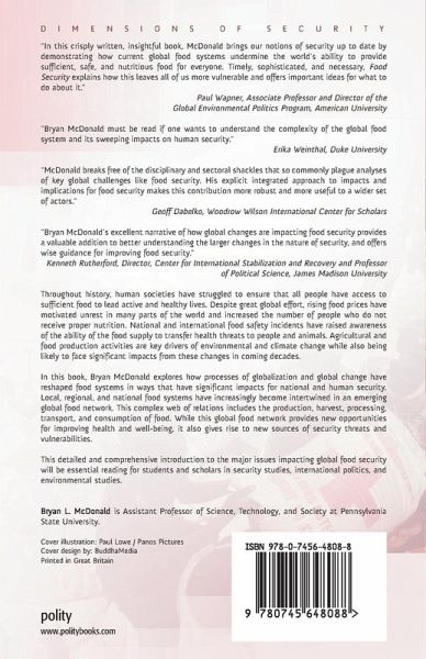 "In this crisply written, insightful book, McDonald brings our notions of security up to date by demonstrating how current global food systems undermine the world's ability to provide sufficient, safe, and nutritious food for everyone. Timely, sophisticated, and necessary, Food Security explains how this leaves all of us more vulnerable and offers important ideas for what to do about it."