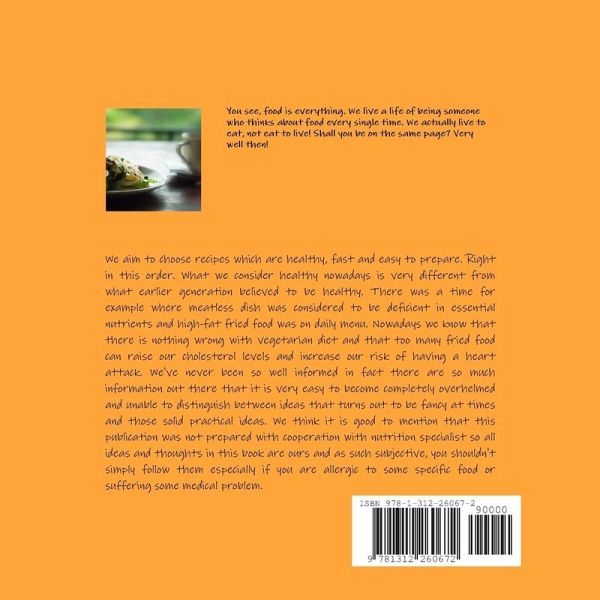You see, food is everything. We live a life of being someone who thinks about food every single time. We actually live to eat, not eat to live! Shall you be on the same page? Very well then! We aim to choose recipes which are healthy, fast and easy to prepare. Right in this order. Nowadays we know that there is nothing wrong with vegetarian diet and that too many fried food can raise our cholesterol levels and increase our risk of having a heart attack. We've never been so well informed in fact there are so much information out there that it is very easy to become completely overwhelmed and unable to distinguish between ideas that turns out to be fancy at times and those solid practical ideas. We think it is good to mention that this publication was not prepared with cooperation with nutrition specialist so all ideas and thoughts in this book are ours and as such subjective, you shouldn't simply follow them especially if you are allergic to some specific food or suffering some medical problem.