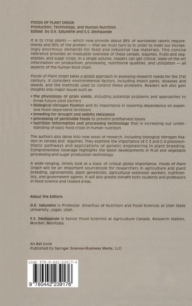Plant Production and Consumption Trends.- References.- 1. Cereals.- Production and Distribution.- Origin and Botanical Classification.- Anatomical Structures of Seeds.- Nitrogen Fixation.- Breeding Approaches.- Physiological Considerations.- Agronomy.- Diseases and Pests.- Chemical Composition and Nutritional Quality.- Processing and Products.- Future Research Needs.- References.- 2. Legumes.- Origin, Diversity, and Phylogenicity.- Biological Nitrogen Fixation by Legumes.- Agronomy.- Weed Control.- Field Pests.- Field Diseases.- Drying.- Storage.- Antinutritional Factors.- Processing.- Utilization.- Research Needs.- References.- 3. Fruits and Vegetables.- Production History.- Fruits.- Vegetables.- Conclusion.- References.- 4. Sugar Crops.- History of Sugar Development.- Sources, Production, and Consumption.- Utilization.- Environmental Factors.- Crop Nutrition and Fertilization.- Cultural Operations.- Postharvest Losses of Sugar Crops.- Maturation and Ripening.- Harvesting.- Loading, Transport, and Delivery.- Storage.- Chemical Control of Postharvest Losses.- Radurization.- Sugar Processing Technology.- Utilization of Sugar Industry By-products.- Conclusions.- References.