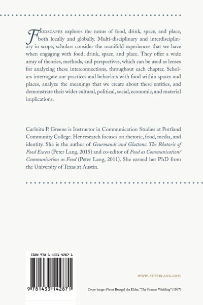 Carlnita P. Greene: Introduction: Mapping the Contemporary Foodscape-Intersections Between Food, Space and Place - June Brawner: "You Can Taste It in the Wine": Terroir and the Embodiment of Place - Kathryn E. Sampeck: Chocolate, Place, and Space: Cacao Terroir and Pre-Columbian to Early Modern Political Geographies - Ryan S. Eanes: The Restaurant: A Perfect Collision of Public and Private? - Michael Pennell: Music to Our Mouths: Ambiance, Place, and Flavor in Modern Dining - Michael S. Bruner/Elizabeth Phillips: Food at School - Melanija Belaj/Jelena Ivanisevic: The Contemporary Allure of a Food Market: An Ethnographic Study of Dolac Market - Christine Hippert: "Put It on My Tab": Dominican-Haitian Relations and Buying Food on Credit in Neighborhood Corner Stores - Ross Singer: Agrarian Myth, Public Memory, and the Industrial Food Narrative of American Family Farming at Iowa's Living History Farms Open-Air Museum - Courtney Thorsson: Kitchen, Nation, Diaspora: Ntozake Shange's African American Foodways - Zachary Hecht: #London Vegans - Leda Cooks: Bodies, Places and Spaces for Food Taste and Waste - Irina Gendelman/Jeff Birkenstein: Teaching Travel through Wandering and Food - David Szanto: Touring Taste and Place: A Performance of Tongues, Terroir, and Taters - Contributors - Index.