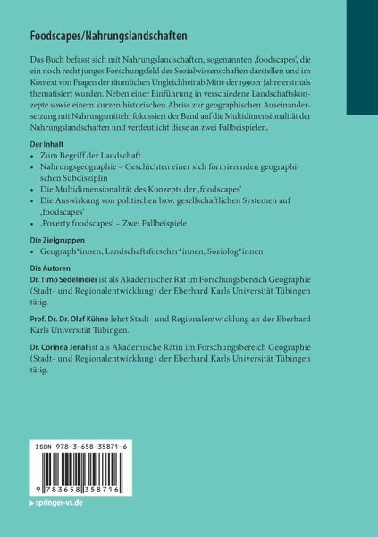 Einführung.- Zum Begriff der Landschaft.- Nahrungsgeographie - Geschichten einer sich formierenden geographischen Subdisziplin.- Die Multidimensionalität des Konzepts der 'foodscapes'.- Die Auswirkung von politischen bzw. gesellschaftlichen Systemen auf 'foodscapes'.- 'Poverty foodscapes' - Zwei Fallbeispiele.- Fazit.