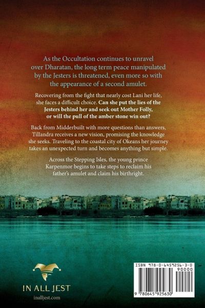 As the Occultation continues to unravel over Dharatan, the long term peace manipulated by the Jesters is threatened, even more so with the appearance of a second amulet. Recovering from the fight that nearly cost Lani her life, she faces a difficult choice. Can she put the lies of the Jesters behind her and seek out Mother Folly, or will the pull of the amber stone win out? Back from Midderbuilt with more questions than answers, Tillandra receives a new vision, promising the knowledge she seeks. Traveling to the coastal city of Okeans her journey takes an unexpected turn and becomes anything but simple. Across the Stepping Isles, the young prince Karpenmor begins to take steps to reclaim his father's amulet and claim his birthright. Fool Me Twice is Book 2 in the In All Jest series, an epic fantasy series by fantasy author D.E. King.