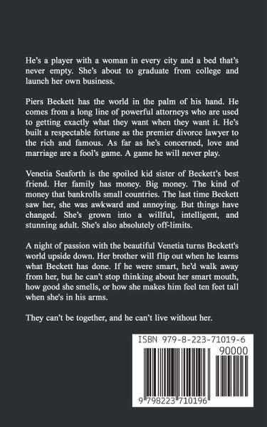 He's a player with a woman in every city and a bed that's never empty. She's about to graduate from college and launch her own business. A night of passion with the beautiful Venetia turns Beckett's world upside down. Her brother will flip out when he learns what Beckett has done. If he were smart, he'd walk away from her, but he can't stop thinking about her sassy mouth, how good she smells, or how she makes him feel ten feet tall when she's in his arms. Welcome to the world of the Seaforth Billionaires, where powerful men battle corruption, lies, and dirty secrets to protect the women they love. This book was formerly titled Pretty Dirty Secrets.