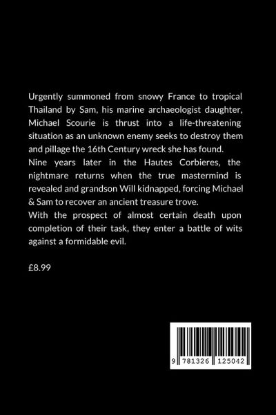 Urgently summoned from snowy France to tropical Thailand by Sam, his marine archaeologist daughter, Michael Scourie is thrust into a life-threatening situation as an unknown enemy seeks to destroy them and pillage the 16th Century wreck she has found. Nine years later in the Hautes Corbieres, the nightmare returns when the true mastermind is revealed and grandson Will kidnapped, forcing Michael & Sam to recover an ancient treasure trove. With the prospect of almost certain death upon completion of their task, they enter a battle of wits against a formidable evil. £8.99