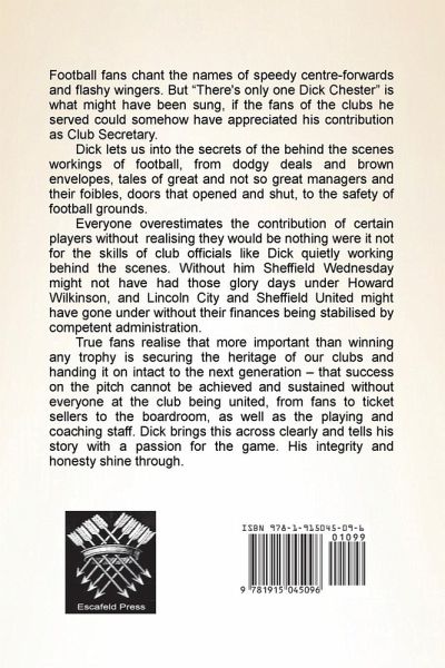 Football fans chant the names of speedy centre-forwards and flashy wingers. But "There's only one Dick Chester" is what might have been sung, if the fans of the clubs he served could somehow have appreciated his contribution as Club Secretary. Dick lets us into the secrets of the behind the scenes workings of football, from dodgy deals and brown envelopes, tales of great and not so great managers and their foibles, doors that opened and shut, to the safety of football grounds. Everyone overestimates the contribution of certain players without realising they would be nothing were it not for the skills of club officials like Dick quietly working behind the scenes. Without him Sheffield Wednesday might not have had those glory days under Howard Wilkinson, and Lincoln City and Sheffield United might have gone under without their finances being stabilised by competent administration. True fans realise that more important than winning any trophy is securing the heritage of our clubs and handing it on intact to the next generation - that success on the pitch cannot be achieved and sustained without everyone at the club being united, from fans to ticket sellers to the boardroom, as well as the playing and coaching staff. Dick brings this across clearly and tells his story with a passion for the game. His integrity and honesty shine through.