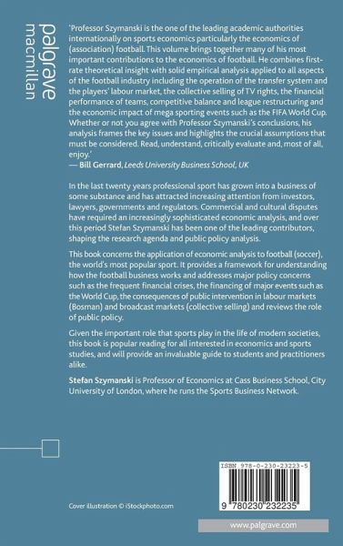 'Professor Szymanski is the one of the leading academic authorities internationally on sports economics particularly the economics of (association) football. This volume brings together many of his most important contributions to the the economics of football. He combines first-rate theoretical insight with solid empirical analysis applied to all aspects of the football industry including the operation of the transfer system and the players' labour market, the collective selling of TV rights, the financial performance of teams, competitive balance and league restructuring, and the economic impact of mega sporting events such as the FIFA World Cup. Whether or not you agree with Professor Szymanski's conclusions, his analysis frames the key issues and highlights the crucial assumptions that must be considered. Read, understand, critically evaluate and, most of all, enjoy.' - Bill Gerrard, Leeds University Business School, UK.
