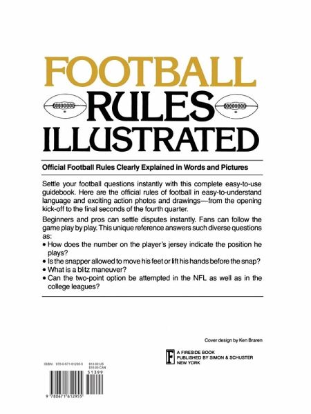 All the official football rules clearly explained in words and pictures—for players, coaches, and fans of this hard-hitting sport. Settle your football questions instantly with this complete, easy-to-use guidebook. Here are the official rules of football—from the opening kick-off to the final seconds of the fourth quarter—in accessible language and exciting action photos and drawings.