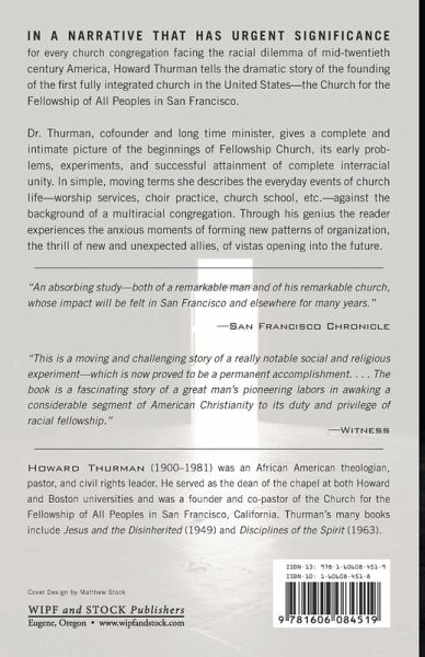 In a narrative that has urgent significance for every church congregation facing the racial dilemma of mid-twentieth century America, Howard Thurman tells the dramatic story of the founding of the first fully integrated church in the United States--the Church for the Fellowship of All Peoples in San Francisco. Dr. Thurman, cofounder and long time minister, gives a complete and intimate picture of the beginnings of Fellowship Church, its early problems, experiments, and successful attainment of complete interracial unity. In simple, moving terms he describes the everyday events of church life--worship services, choir practice, church school, etc. - against the background of a multiracial congregation. Through his genius the reader experiences the anxious moments of forming new patterns of organization, the thrill of new and unexpected allies, of vistas opening into the future.