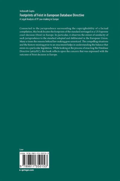 Connected to the jurisprudence surrounding the copyrightability of a factual compilation, this book locates the footprints of the standard envisaged in a US Supreme court decision (Feist) in Europe. In particular, it observes the extent of similarity of such jurisprudence to the standard adopted and deliberated in the European Union. Many a times the reasons behind law making goes unnoticed. The compelling situations and the history existing prior to an enactment helps in understanding the balance that exists in a particular legislation. While looking at the process of enacting the Database Directive (96/9/EC), this book reflects upon the concern that was expressed with the outcome of Feist decision in Europe.