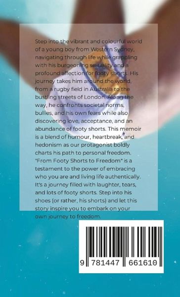 Step into the vibrant and colourful world of a young boy from Western Sydney, navigating through life while grappling with his burgeoning sexuality and a profound affection for footy shorts. His journey takes him around the world, from a rugby field in Australia to the bustling streets of London. Along the way, he confronts societal norms, bullies, and his own fears while also discovering love, acceptance, and an abundance of footy shorts. This memoir is a blend of humour, heartbreak, and hedonism as our protagonist boldly charts his path to personal freedom. "From Footy Shorts to Freedom" is a testament to the power of embracing who you are and living life authentically. It's a journey filled with laughter, tears, and lots of footy shorts. Step into his shoes (or rather, his shorts) and let this story inspire you to embark on your own journey to freedom.