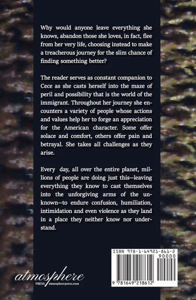 Why would anyone leave everything she knows, abandon those she loves, in fact, flee from her very life, choosing instead to make a treacherous journey for the slim chance of finding something better? The reader serves as constant companion to Cece as she casts herself into the maze of peril and possibility that is the world of the immigrant. Throughout her journey she encounters a variety of people whose actions and values help her to forge an appreciation for the American character. Some offer solace and comfort, others offer pain and betrayal. She takes all challenges as they arise. Every day, all over the entire planet, millions of people are doing just this-leaving everything they know to cast themselves into the unforgiving arms of the unknown-to endure confusion, humiliation, intimidation and even violence as they land in a place they neither know nor understand.