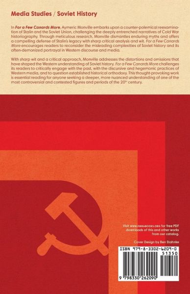 In For a Few Canards More, Aymeric Monville embarks upon a counter-polemical reexamination of Stalin and the Soviet Union, challenging the deeply entrenched narratives of Cold War historiography. Through meticulous research, Monville dismantles enduring myths and offers a compelling defense of Stalin's legacy with sharp critical analysis and wit. For a Few Canards More encourages readers to reconsider the misleading complexities of Soviet history and its often-demonized portrayal in Western discourse and media. With sharp wit and a critical approach, Monville addresses the distortions and omissions that have shaped the largely-anglophone understanding of Soviet history. For a Few Canards More challenges its readers to critically engage with the past, with the discursive and hegemonic practices of Western media, and to question established historical orthodoxy. This thought-provoking work is essential reading for anyone seeking a deeper, more nuanced understanding of one of the most controversial and contested figures and periods of the 20th century.