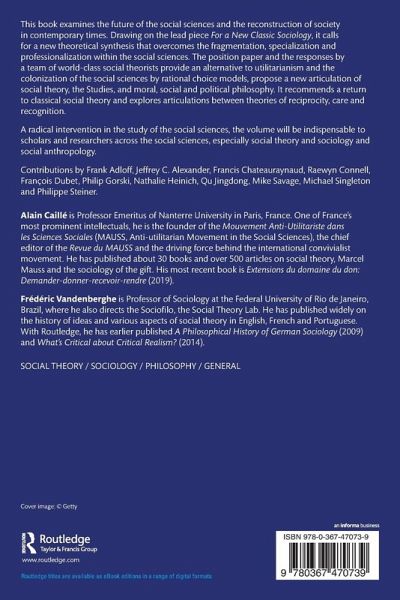 This book examines the future of the social sciences and the reconstruction of society in contemporary times. Drawing on the lead piece For a New Classic Sociology, it calls for a new theoretical synthesis that overcomes the fragmentation, specialization and professionalization within the social sciences. The position paper and the responses by a team of world-class social theorists provide an alternative to utilitarianism and the colonization of the social sciences by rational choice models, propose a new articulation of social theory, and moral, social and political philosophy. It recommends a return to classical social theory and explores articulations between theories of reciprocity, care and recognition.