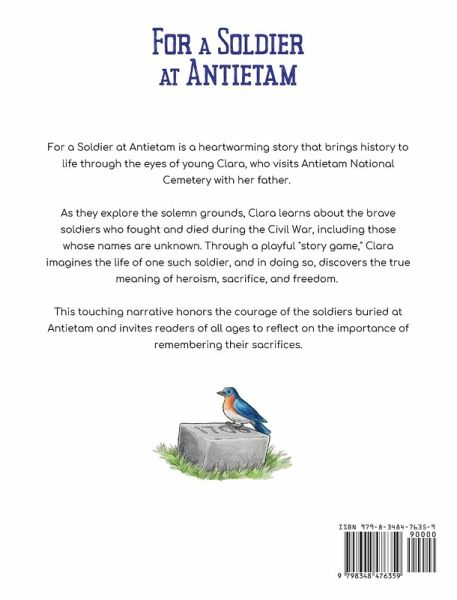 For a Soldier at Antietam is a heartwarming story that brings history to life through the eyes of young Clara, who visits Antietam National Cemetery with her father. As they explore the solemn grounds, Clara learns about the brave soldiers who fought and died during the Civil War, including those whose names are unknown. Through a playful "story game," Clara imagines the life of one such soldier, and in doing so, discovers the true meaning of heroism, sacrifice, and freedom. This touching narrative honors the courage of the soldiers buried at Antietam and invites readers of all ages to reflect on the importance of remembering their sacrifices.