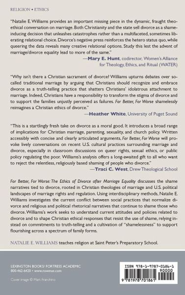For Better, for Worse: The Ethics of Divorce after Marriage Equality examines the persistent notion that heterosexual marriage is in crisis in the United States. Natalie E. Williams proposes an ethical response that challenges the political and religious rhetoric of shame around divorce.