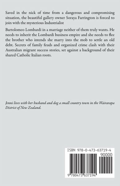 Saved in the nick of time from a dangerous and compromising situation, the beautiful gallery owner Soraya Farrington is forced to join with the mysterous Industrialist Bartolomeo Lombardi in a marriage neither of them truly wants. He needs to inherit the Lombardi business empire and she needs to flee the brother who intends she marry into the mob to settle an old debt. Secrets of family feuds and organized crime clash with their Australian migrant success stories, set against a background of their shared Catholic Italian roots.