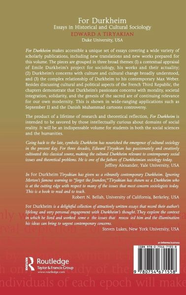 For Durkheim is a timely and original contribution to the debate about Durkheim at a time when his concerns on ethics, morality and civil religion have much relevance for our own troubled and divided society. It includes two new essays from Edward A. Tiryakian's collection on the Danish Muhammad cartoons and September 11th, providing contemporary relevance to the debate and an analytical and interpretive introduction indicating the ongoing importance of Durkheim within sociology. This indispensable volume for all serious Durkheim scholars includes English translations of papers previously published in French for the first time, and will be of interest to sociologists, anthropologists, social historians and those interested in critical questions of modernity.