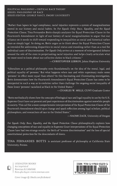 Introduction Chapter Summaries Chapter 1: Scholarly Backdrop Legal Hermeneutics Critical Philosophy of Race Critical Race Theory Origins: The Work of Derrick Bell Critical Race Theory and Equality Chapter 2: Equal Protection and Racialized Persons The Rise of Separate But Equal Doctrine What is Equal Protection? Racial Discrimination Per Se Begins: Japanese Americans after WWII Social Segregation Separate as Inferior Separate But Equal Overturned Racial Classifications and Marriage Discriminatory Intent vs. Discriminatory Impact Bakke: Racial Discrimination Per Se is Formalized Post-Bakke Fall-Out Concluding Reflections Chapter 3: The Concept of Race and Equal Protection Law The Supreme Court's Switch from Sociocultural/Sociohistorical Race to Biological Race The Academic Switch from Biological Race to Sociocultural/Sociohistorical Race A Change in Understanding of the Problem of Racial Discrimination Concluding Reflections Chapter 4: The Concept of Equality and Equal Protection Law