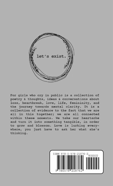 for girls who cry in public is a collection of poetry & thoughts, ideas & conversations about loss, heartbreak, love, life, femininity, and the journey towards mental clarity. It is a collection of evidence to the fact that we are all in this together; we are all connected within these moments. We take our heartache and turn it into something tangible, in order to grow and blossom. Love is lurking everywhere, you just have to ask her what she's thinking.