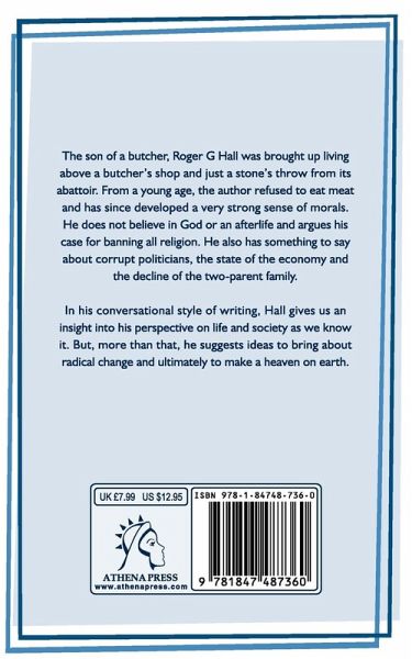 The son of a butcher, Roger G Hall was brought up living above a butcher's shop and just a stone's throw from its abattoir. From a young age, the author refused to eat meat and has since developed a very strong sense of morals. He does not believe in God or an afterlife and argues his case for banning all religion. He also has something to say about corrupt politicians, the state of the economy and the decline of the two-parent family. In his conversational style of writing, Hall gives us an insight into his perspective on life and society as we know it. But, more than that, he suggests ideas to bring about radical change and ultimately to make a heaven on earth.