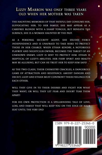 Lizzy Marron was only three years old when her mother was taken. The haunting memories of that fateful day consume her, suffocating her. To her family, she may appear as a carefree blonde with a sharp tongue, but beneath the surface, she is a woman haunted by the past. As a personal security agent, she exudes fierce independence and is unafraid to take risks to protect those in her charge. When Ethan Kendry, a notorious playboy and nightclub owner, becomes the target of an unknown enemy, Lizzy is sent to protect him. Ethan is skeptical of Lizzy's abilities. Her fiery spirit and beauty may be alluring, but can he trust her to keep him safe? As the two clash, their chemistry crackles, a dangerous game of attraction and resistance. Amidst danger and deceit, Lizzy and Ethan must confront their feelings for each other. Will they give in to their desires and fight for what they want, or will they let fear and doubt tear them apart? For His Own Protection is a spellbinding tale of love, loss, and family that will keep you on the edge of your seat until the very end.