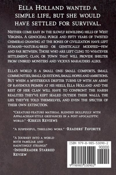 Ella Holland wanted a simple life, but she would have settled for survival. Life in the ravaged wilds of Appalachia is dangerous, and most folks don't live past fifty. Even if sickness or starvation doesn't get you, the rival clans, or shifty nomads, or the unbred monsters that roam the hills will. This is why a clan must stick together at all costs, nestled in whatever patch of peaceful land it has scratched out for itself. This is why strangers are not to be trusted. But when a wandering drifter turns up with an army of ravenous pigmen at his heels, Ella Holland and the rest of her clan will have to confront the harsh realities they've kept sealed outside their walls, the lies they've told themselves, and even the specter of their own extinction. Can there be room in all this for tenderness? For compassion? For home and hearth? "Creature-feature material blended skillfully with Appalachian-style grievances in a post-apocalyptic world." -Kirkus Reviews "So many novels struggle to tell these kinds of tales... Ethan Warrener's novel is a suspenseful, thrilling work." -Readers' Favorite "With a richly developed community, multidimensional characters, and an ever-present sense of looming tension and danger, Ethan Warrener's FOR HOME AND HEARTH offers readers an immersive journey into a world both familiar and hauntingly strange." -IndieReader "A great survival story set in post-apocalyptic America with themes of of what it means to be human, control and consequences of development." -Eilish Shovelin, Reedsy Discovery