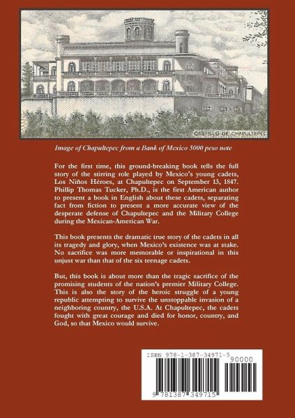 For the first time, this ground-breaking book tells the full story of the stirring role played by Mexico's young cadets, Los Niños Héroes, at Chapultepec on September 13, 1847. Phillip Thomas Tucker, Ph.D., is the first American author to present a book in English about these cadets, separating fact from fiction to present a more accurate view of the desperate defense of Chapultepec and the Military College during the Mexican-American War. This book presents the dramatic true story of the cadets in all its tragedy and glory, when Mexico's existence was at stake. No sacrifice was more memorable or inspirational in this unjust war than that of the six teenage cadets. But, this book is about more than the sacrifice of these students. This is also the story of the heroic struggle of a young republic attempting to survive the unstoppable invasion of a neighboring country, the U.S.A. At Chapultepec, the cadets fought with great courage and died for honor, country, and God, so that Mexico would survive.