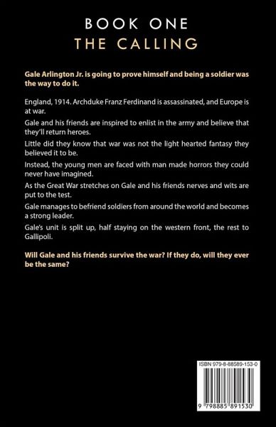Gale Arlington Jr. is going to prove himself and being a soldier was the way to do it. England, 1914. Archduke Franz Ferdinand is assassinated, and Europe is at war. Gale and his friends are inspired to enlist in the army and believe that they'll return heroes. Little did they know that war was not the light hearted fantasy they believed it to be. Instead, the young men are faced with man made horrors they could never have imagined. As the Great War stretches on Gale and his friends nerves and wits are put to the test. Gale manages to befriend soldiers from around the world and becomes a strong leader. Gale's unit is split up, half staying on the western front, the rest to Gallipoli. Will Gale and his friends survive the war? If they do, will they ever be the same?