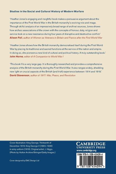 Introduction; Prelude: The monarchy and wartime political power. Part I. The role of the British monarchy in cultural mobilisation for war: 1. Monarchist mentalities and British mobilisation, 1914 1916; 2. Monarchist culture and combatant practices. Part II. The emperor's new clothes: Changing cultures of deference: 3. The royal body in wartime; 4. De-sacralisation discourses challenges to the monarchy's status, 1916 1918. Part III. The unknown soldier: The role of the monarchy in post-war commemoration; 5. The monarchy and the armistice: Ritualising victory, channelling war grief; 6. The monarchy's role in sacralising post-war commemoration; Conclusion.