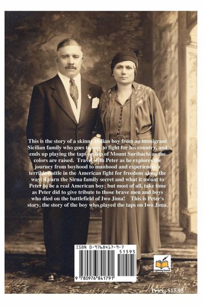 This is the story of a skinny Italian boy from an immigrant Sicilian family who goes to war to fight for his country and ends up playing the taps on Mount Suribachi as the colors are raised. Travel with Peter as he explores the journey from boyhood to manhood and experiences a terrible battle in the fight for American freedom along the way. Learn the Sirna family secret and what it meant to Peter to be a real American boy; but most of all, take the time as Peter did to give tribute to those brave American men and boys who died on the battlefield of Iwo Jima. This is Peter's story, the story of the boy who played the taps on Iwo Jima.