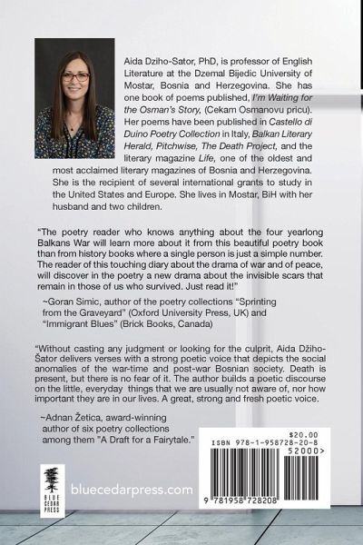 Aida Dziho-Sator, PhD, is professor of English Literature at the Dzemal Bijedic University of Mostar, Bosnia and Herzegovina. She has one book of poems published, I'm Waiting for the Osman's Story, (Cekam Osmanovu pricu). Her poems have been published in Aida Dziho-Sator, PhD, is professor of English Literature at the Dzemal Bijedic University of Mostar, Bosnia and Herzegovina. She has one book of poems published, I'm Waiting for the Osman's Story, (Cekam Osmanovu pricu). Her poems have been published in Castello di Duino Poetry Collection in Italy, Balkan Literary Herald, Pitchwise, The Death Project, and the literary magazine Life, one of the oldest and most acclaimed literary magazines of Bosnia and Herzegovina. She is the recipient of a fellowship to the U.S. Institute of Scholars and several teaching grants in Europe. She lives in Mostar, BiH with her husband and two children.She is the recipient of a fellowship to the U.S. Institute of Scholars and several teaching grants in Europe. She lives in Mostar, BiH with her husband and two children.