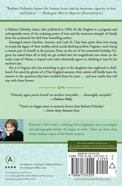 A Barbara Delinsky classic, first published in 1994, For My Daughters is a poignant and unforgettable story of the enduring power of love and the tenacious strength of family from the acclaimed New York Times bestselling author. Estranged sisters Caroline, Annette, and Leah St. Clair have spent their lives trying to escape the legacy of their wealthy, aloof, social-climbing mother, Virginia?each losing a certain part of herself in the process. Now, on the eve of her seventieth birthday, Virginia has asked them all to help her get settled into her magnificent new estate on the rocky coast of Maine, a request each sister reluctantly agrees to, thinking it may be her mother's last. But it is Virginia who has something to give to the daughters she neglected in childhood. For amid the glories of a New England summer, three sisters will finally learn the answers to the questions that have troubled them for years . . . and new truths that will stay with them forever.