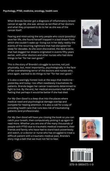 When Brenda Denzler got a diagnosis of inflammatory breast cancer at age 56, she was almost as terrified of her doctors and what they proposed to do to her as she was of the cancer itself. Fearing and mistrusting the only people who could (possibly) save her life, she found herself trapped in a bad dream from which she couldn't wake up--living out in her daily reality the events of the recurring nightmare that had disrupted her sleep for decades. As she soon discovered, the dark events that had dogged her dreams originated in events fifty years earlier, with other doctors and other nurses who had done things to her "for her own good." This is the story of Brenda's struggle to survive, not just physically, but, most importantly, psychologically in the face of her overwhelming terror of the doctors and nurses who, once again, wanted to do things to her "for her own good." It is also a searingly honest look at the ways that medicine--yesterday and today--too often needlessly traumatizes its patients. Brenda began her cancer treatments determined to fight to live. By the end, her medical encounters had left her feeling that perhaps it would be better if she had died. For My Own Good is a deep dive into the places where medical need and psychological damage overlap and compete for healing attention. It is also a call for a way of providing health care that runs less risk of traumatizing patients (and professionals). For My Own Good will have you closing the book so you can catch your breath, then compulsively picking it up again to read more. Whether you are one of the many thousands of people with PTSD due to traumatic medical treatment, their friends and family who have had to stand back powerlessly and watch, or a doctor or nurse who has struggled to treat a difficult patient with a traumatic medical past, Brenda's story rings a bell that we must not fail to hear.