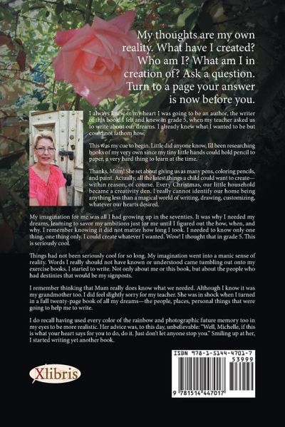 My thoughts are my own reality. What have I created? Who am I? What am I in creation of? Ask a question. Turn to a page your answer is now before you.