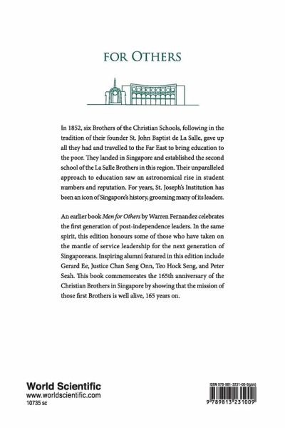 In 1852, six Brothers of the Christian Schools, following in the tradition of their founder St. John Baptist de La Salle, gave up all they had and travelled to the Far East to bring education to the poor. They landed in Singapore and established the second school of the La Salle Brothers in this region. Their unparalleled approach to education saw an astronomical rise in student numbers and reputation. For years, St. Joseph's Institution has been an icon of Singapore's history, grooming many of its leaders. An earlier book Men for Others by Warren Fernandez celebrates the first generation of post-independence leaders. In the same spirit, this edition honours some of those who have taken on the mantle of service leadership for the next generation of Singaporeans. Inspiring alumni featured in this edition include Gerard Ee, Justice Chan Seng Onn, Teo Hock Seng, and Peter Seah. This book commemorates the 165th anniversary of the Christian Brothers in Singapore by showing that the mission of those first Brothers is well alive, 165 years on.