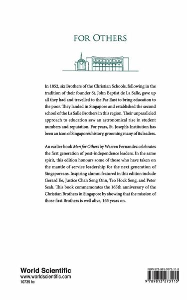 In 1852, six Brothers of the Christian Schools, following in the tradition of their founder St. John Baptist de La Salle, gave up all they had and travelled to the Far East to bring education to the poor. They landed in Singapore and established the second school of the La Salle Brothers in this region. Their unparalleled approach to education saw an astronomical rise in student numbers and reputation. For years, St. Joseph's Institution has been an icon of Singapore's history, grooming many of its leaders. An earlier book Men for Others by Warren Fernandez celebrates the first generation of post-independence leaders. In the same spirit, this edition honours some of those who have taken on the mantle of service leadership for the next generation of Singaporeans. Inspiring alumni featured in this edition include Gerard Ee, Justice Chan Seng Onn, Teo Hock Seng, and Peter Seah. This book commemorates the 165th anniversary of the Christian Brothers in Singapore by showing that the mission of those first Brothers is well alive, 165 years on.