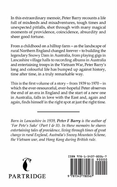 In this extraordinary memoir, Peter Barry recounts a life full of misdeeds and misadventures, tough times and unexpected pitfalls, shot through with many magical moments of providence, coincidence, absurdity and sheer good fortune. From a childhood on a hilltop farm - as the landscape of rural Northern England changed forever - to building the legendary Snowy Dam in Australia, from playing gigs in Lancashire village halls to recording albums in Australia and entertaining troops in the Vietnam War, Peter Barry's long and colourful life has bumped up against history, time after time, in a truly remarkable way. This is the first volume of a story - from 1939 to 1970 - in which the ever-resourceful, ever-hopeful Peter observes the end of an era in England and the start of a new one in Australia, falls in love with the East and, again and again, finds himself in the right spot at just the right time.