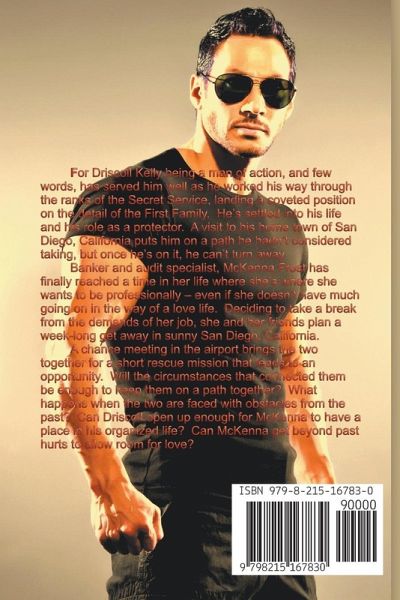 For Driscoll Kelly being a man of action, and few words, has served him well as he worked his way through the ranks of the Secret Service, landing a coveted position on the detail of the First Family. Making the decision to change his trajectory, he moved to a division chief position in a location right outside of Atlanta, Georgia. He's settled into his life and his role as a protector. A visit to his home town of San Diego, California puts him on a path he hadn't considered taking, but once he's on it, he can't turn away. Banker and audit specialist, McKenna Frost has finally reached a time in her life where she's where she wants to be professionally - even if she doesn't have much going on in the way of a love life. With the support of her loving family and sister circle, she recovered from the disastrous end of a relationship she found was nothing but a house of cards. Deciding to take a break from the demands of her job, she and her friends plan a week-long get away in sunny San Diego, California. A chance meeting in the airport brings the two together for a short rescue mission that leads to an opportunity. Will the circumstances that connected them be enough to keep them on a path together? What happens when the two are faced with obstacles from the past? Can Driscoll open up enough for McKenna to have a place in his organized life? Can McKenna get beyond past hurts to allow room for love?