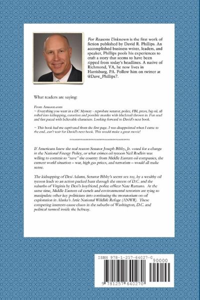 If Americans knew the real reason Senator Joseph Bibby, Jr. voted for a change in the National Energy Policy, or what crimes oil tycoon Neil Rodkin was willing to commit to "save" the country from Middle Eastern oil companies, the current world situation - war, high gas prices, and terrorism - would all make sense. The kidnapping of Desi Adams, Senator Bibby's secret sex toy, by a wealthy oil tycoon leads to an action packed hunt through the streets of D.C. and the suburbs of Virginia by Desi's boyfriend, police officer Nate Ramano. At the same time, Middle Eastern oil cartels and environmental terrorists are tying to manipulate other key politicians into continuing the moratorium on oil exploration in Alaska's Artic National Wildlife Refuge (ANWR). These competing interests cause chaos in the suburbs of Washington, D.C. and political turmoil inside the beltway.