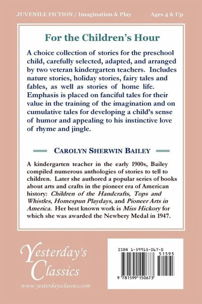 A choice collection of stories for the preschool child, carefully selected, adapted, and arranged by two veteran kindergarten teachers. Includes nature stories, holiday stories, fairy tales and fable, as well as stories of home life. Emphasis is placed on fanciful tales for their value in the training of the imagination and on cumulative tales for developing a child's sense of humor and appealing to his instinctive love of rhyme and jingle. Suiitable for children ages 4 to 7.