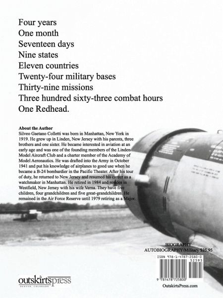 Armed with his sense of humor, a camera and his tiple ukulele, Silveo Colletti starts off on his WWII adventure that takes him from Linden, New Jersey to the far South Pacific and back. This first-hand account, written entirely by Major Colletti, is rich with historical details, music of the day, and over 200 restored original photos and documents that will pull you into the story, making you feel like you were there. The author begins with his peacetime induction into the Army in October 1941. He takes you through basic training, the medical department at Langley Field, aviation cadet training, then on to becoming a B24 bombardier. He was assigned to the famous Red Raiders of the 5th Air Force, 22nd Bombardment Group, 408th Squadron. This fearless, heavy bomb group tore through the Pacific pushing back the Japanese and liberating the Philippines. They carried out missions over China, Formosa, Japan, Borneo, Ceram, and Halmahera and were at the center of the epic Battle of Leyte Gulf. You will find yourself deeply absorbed in this warm story filled with camaraderie and humor, while learning what life was really like in WWII and the conditions that our veterans had to endure. They displayed the skills and determination to "MacGyver" their way through the worst of it. More than once Major Colletti pulled himself out of a jam with his knowledge of model airplanes, high school mechanical drawing, watch making skills and an issue of Flying Aces magazine! With X-ray machines, conga lines, slit trenches, a clarinet player, the Norden bombsight, cannibals, Sabu the Elephant Boy, the Japanese and one spirited, southern redheaded beauty from Georgia, this book covers it all and will stay with you long after you've read it.