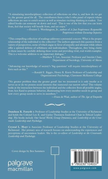 "No greater problem than the greater good! Are we interested in it only insofar as it serves us, as some would argue, or do we possess social interests that transcend our narrow selves? This volume looks at the interaction between the individual and the collective from all possible angles, from Ayn Rand to primate behavior, illuminating how every member needs its group and how every group needs to serve its members." - Frans de Waal, author of The Age of Empathy