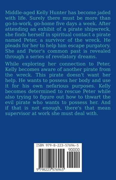 Middle-aged Kelly Hunter has become jaded with life. Surely there must be more than go-to-work, go-home five days a week. After attending an exhibit of a pirate shipwreck, she finds herself in spiritual contact a pirate named Peter, a survivor of the wreck. He pleads for her to help him escape purgatory. She and Peter's common past is revealed through a series of revelatory dreams. While exploring her connection to Peter, Kelly becomes aware of another pirate from the wreck. This pirate doesn't want her help. He wants to possess her body and use it for his own nefarious purposes. Kelly becomes determined to rescue Peter while also trying to figure out how to thwart the evil pirate who wants to possess her. And if that is not enough, there's that mean supervisor at work she must deal with.