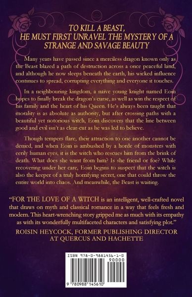 To kill a Beast, he must first unravel the mystery of a strange and savage Beauty Many years have passed since a merciless dragon known only as the Beast blazed a path of destruction across a once peaceful land, and although he now sleeps beneath the earth, his wicked influence continues to spread, corrupting everything and everyone it touches. In a neighbouring kingdom, a naïve young knight named Eoin hopes to finally break the dragon's curse, as well as win the respect of his family and the heart of his Queen. He's always been taught that morality is as absolute as authority, but after crossing paths with a beautiful yet notorious witch, Eoin discovers that the line between good and evil isn't as clear-cut as he was led to believe. Though tempers flare, their attraction to one another cannot be denied, and when Eoin is ambushed by a horde of monsters with eerily human eyes, it is the witch who rescues him from the brink of death. What does she want from him? Is she friend or foe? While recovering under her care, Eoin begins to suspect that the witch is also the keeper of a truly horrifying secret, one that could throw the entire world into chaos. And meanwhile, the Beast is waiting. "FOR THE LOVE OF A WITCH is an intelligent, well-crafted novel that draws on myth and classical romance in a way that feels fresh and modern. This heart-wrenching story gripped me as much with its empathy as with its wonderfully multifaceted characters and satisfying plot."Roisin Heycock, former Publishing Director at Quercus and Hachette