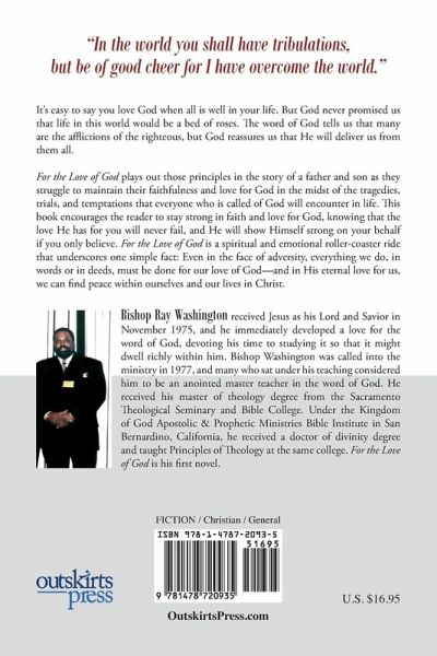 "In the world you shall have tribulations, but be of good cheer for I have overcome the world." It's easy to say you love God when all is well in your life. But God never promised us that life in this world would be a bed of roses. The word of God tells us that many are the afflictions of the righteous, but God reassures us that He will deliver us from them all. For the Love of God plays out those principles in the story of a father and son as they struggle to maintain their faithfulness and love for God in the midst of the tragedies, trials, and temptations that everyone who is called of God will encounter in life. This book encourages the reader to stay strong in faith and love for God, knowing that the love He has for you will never fail, and He will show Himself strong on your behalf if you only believe. For the Love of God is a spiritual and emotional roller-coaster ride that underscores one simple fact: Even in the face of adversity, everything we do, in words or in deeds, must be done for our love of God-and in His eternal love for us, we can find peace within ourselves and our lives in Christ.