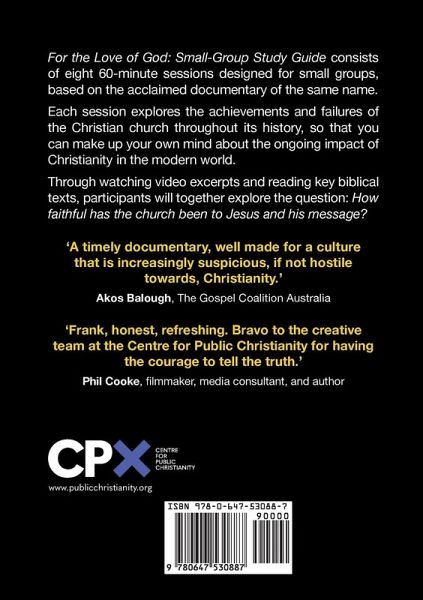 'For the Love of God: Small-Group Study Guide' consists of eight 60-minute sessions designed for small groups, based on the acclaimed documentary of the same name. Each session explores the achievements and failures of the Christian church throughout its history, so that you can make up your own mind about the ongoing impact of Christianity in the modern world. Through watching video excerpts and reading key biblical texts, participants will together explore the question: How faithful has the church been to Jesus and his message?