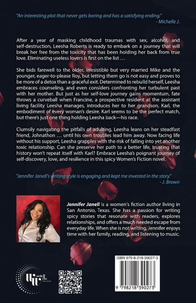 After a year of masking childhood traumas with sex, alcohol, and self-destruction, Leesha Roberts is ready to embark on a journey that will break her free from the toxicity that has been holding her back from true love. Eliminating useless lovers is first on the list ... She bids farewell to the older, irresistible but very married Mike and the younger, eager-to-please Roy, but letting them go is not easy and proves to be more of a detox than a graceful exit. Determined to rebuild herself, Leesha embraces counseling, and even considers confronting her turbulent past with her mother. But just as her self-love journey gains momentum, fate throws a curveball when Francine, a prospective resident at the assistant living facility Leesha manages, introduces her to her grandson, Karl, the embodiment of every woman's desire. Karl seems to be the perfect match, but there's just one thing holding Leesha back-his race. Clumsily navigating the pitfalls of adulting, Leesha leans on her steadfast friend, Johnathon ... until his own troubles lead him away. Now facing life without his support, Leesha grapples with the risk of falling into yet another toxic relationship. Can she preserve her path to a better life, trusting that history won't repeat itself with Karl? Embrace Leesha's poignant journey of self-discovery, love, and resilience in this spicy Women's Fiction novel.