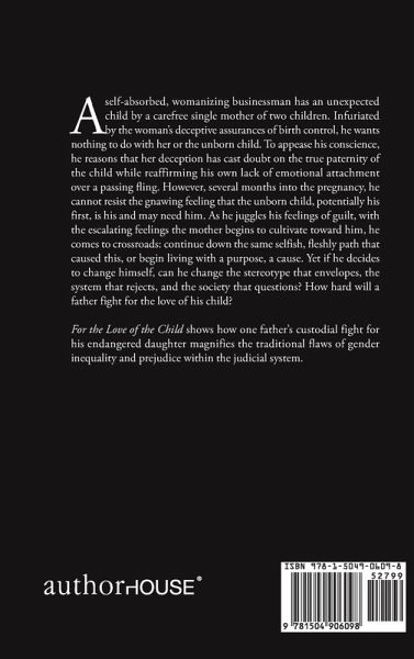 A self-absorbed, womanizing businessman has an unexpected child by a carefree single mother of two children. Infuriated by the woman's deceptive assurances of birth control, he wants nothing to do with her or the unborn child. To appease his conscience, he reasons that her deception has cast doubt on the true paternity of the child while reaffirming his own lack of emotional attachment over a passing fling. However, several months into the pregnancy, he cannot resist the gnawing feeling that the unborn child, potentially his first, is his and may need him. As he juggles his feelings of guilt, with the escalating feelings the mother begins to cultivate toward him, he comes to crossroads: continue down the same selfish, fleshly path that caused this, or begin living with a purpose, a cause. Yet if he decides to change himself, can he change the stereotype that envelopes, the system that rejects, and the society that questions? How hard will a father fight for the love of his child? For the Love of the Child shows how one father's custodial fight for his endangered daughter magnifies the traditional flaws of gender inequality and prejudice within the judicial system.