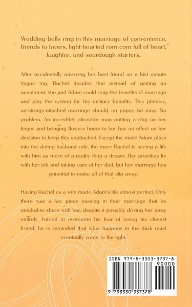 Wedding bells ring in this marriage of convenience, friends to lovers, light-hearted rom com full of heart, laughter, and sourdough starters. After accidentally marrying her best friend on a last minute Vegas trip, Rachel decides that instead of getting an annulment, she and Adam could reap the benefits of marriage and play the system for his military benefits. This platonic, no-strings-attached marriage should, on paper, be easy. No problem. An incredibly attractive man putting a ring on her finger and bringing flowers home to her has no effect on her decision to keep this unattached. Except the more Adam plays into the doting husband role, the more Rachel is seeing a life with him as more of a reality than a dream. Her priorities lie with her job and taking care of her dad, but her marriage has potential to make all of that slip away. Having Rachel as a wife made Adam's life almost perfect. Only there was a key piece missing in their marriage that he needed to share with her, despite it possibly driving her away entirely. Forced to overcome his fear of losing his closest friend, he is reminded that what happens in the dark must eventually come to the light.
